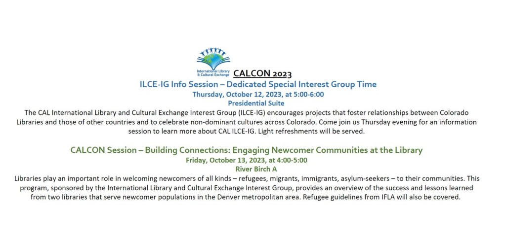 Ever wondered how to expand your library services abroad and connect with another country? CAL’s International Library & Cultural Exchange Interest Group has partnered with Sister Cities International to create a toolkit. In this toolkit, Sister Cities International (SCI) and Sister Libraries share best practices for developing long-lasting and successful relationships between libraries and Sister Cities. Check out this link to access the toolkit.