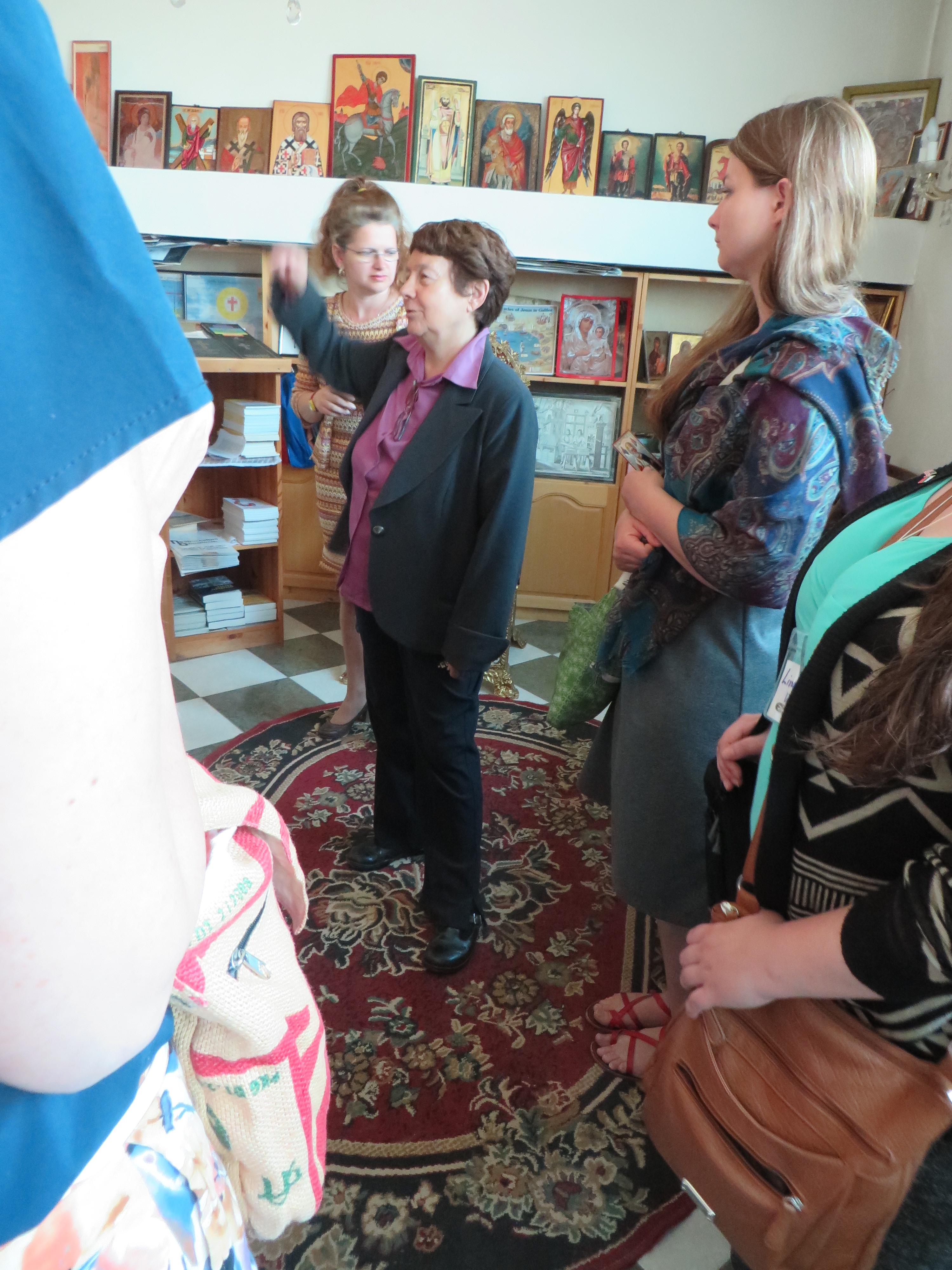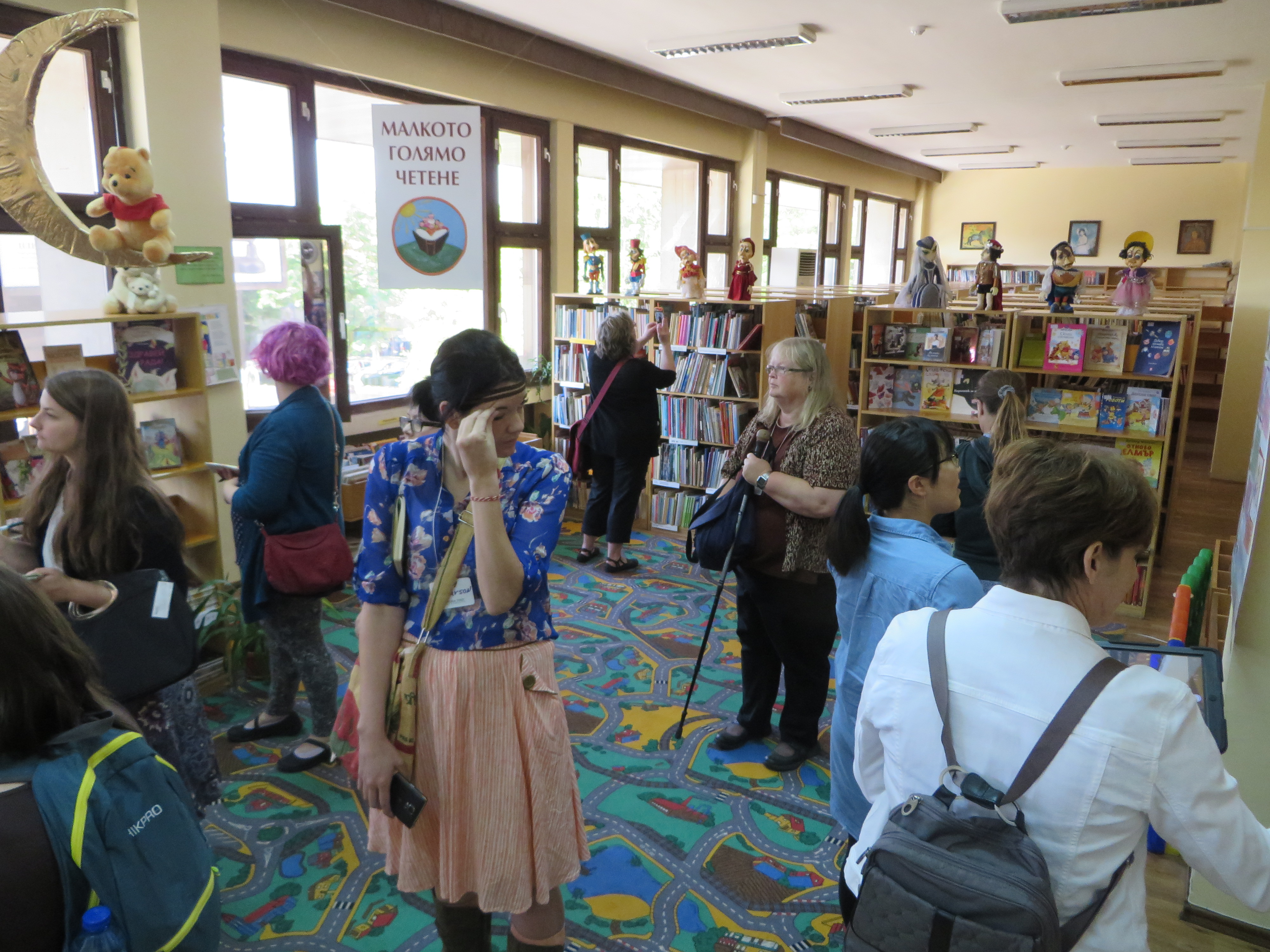 I used my time in London to start getting caught up on my email from work at Deets Library, and to get ready for my summer classes at Emporia State University SLIM. I appreciated connecting my travel experience with work I enjoy, library work, and the sense of mission it has for me. I also aired out the emotions of bonding with the travel group and with Bulgaria through Stefan, Luci,(our bus driver), our hosts at the hotels, the grannies, and all the librarians and students we met: the experience had an intensity that I wanted to remember without interruption by people, animals, and chores at home. Enjoying London, pretending I lived there, was a great way to savor the experience of touring libraries in Bulgaria. In fact, my transition to the U.S. started as I added Bulgarian contacts to social media (Facebook). I had been reporting my travels to my own library and family through text and social media, but quickly realized that I would be able to have continued contact with Bulgarian librarians and Stefan, our tour guide, through social media. I have appreciated the concrete contact this provides through photos and text. I have learned to copy and paste the Cyrillic text into Google translator, chunks at a time, to see what people are talking about when the writing is in Bulgarian. Traveling with a tour guide was an experience I hadn’t had before. Stefan acted as our educator and kept our group lively and entertained. I found that his emotional connection to his country (and to the librarians who hosted us) illuminated the context of our presence in Bulgaria.