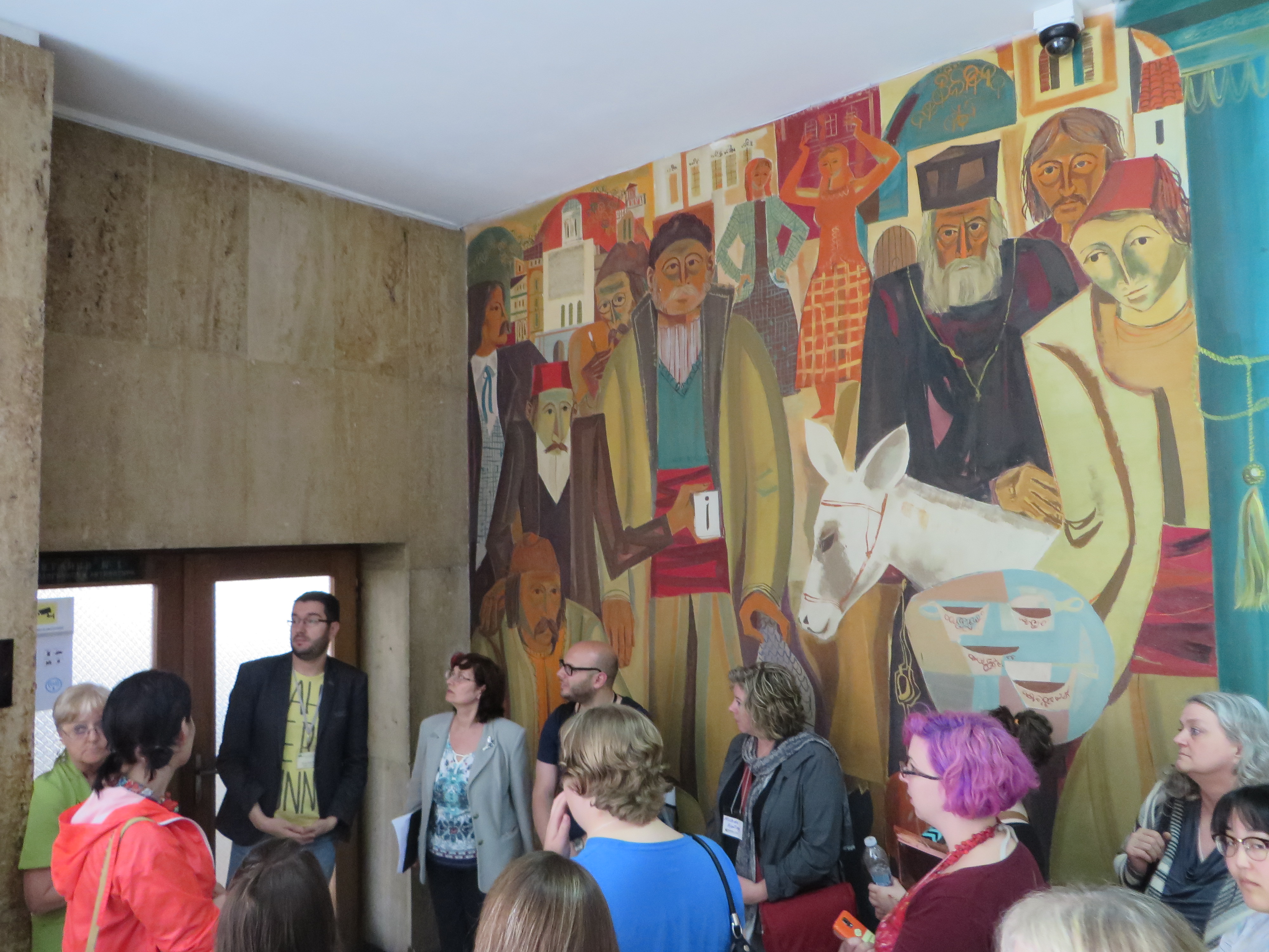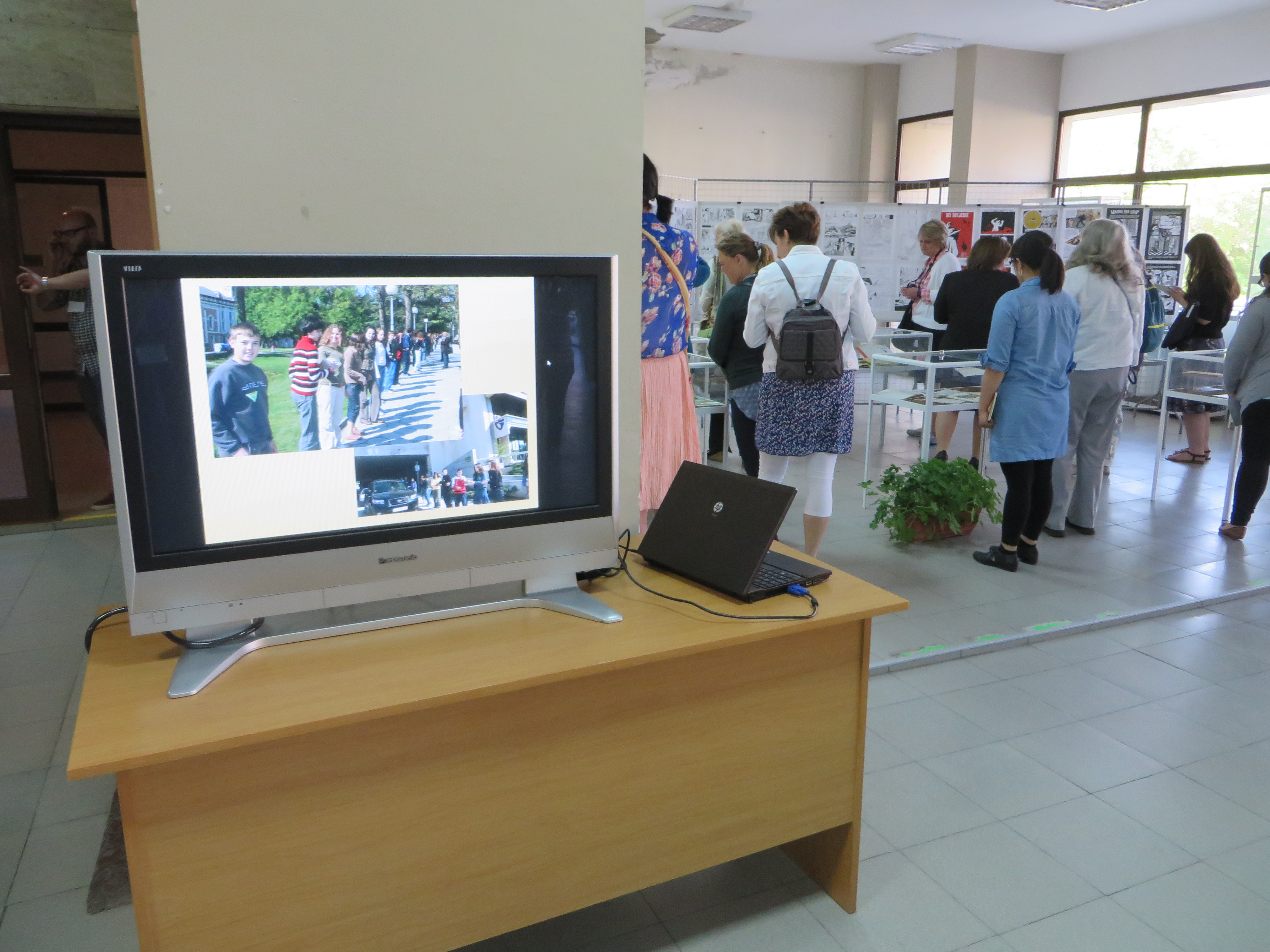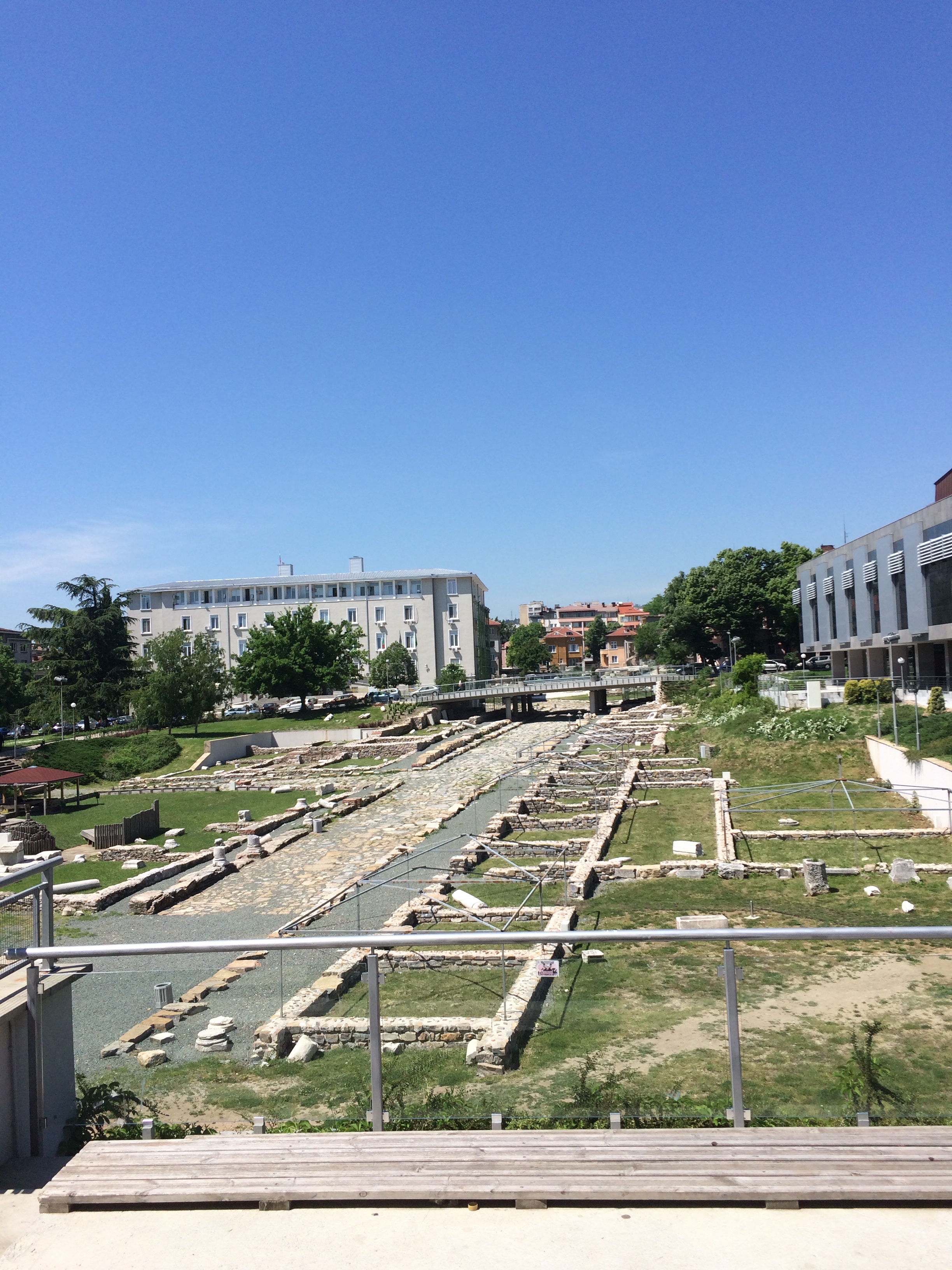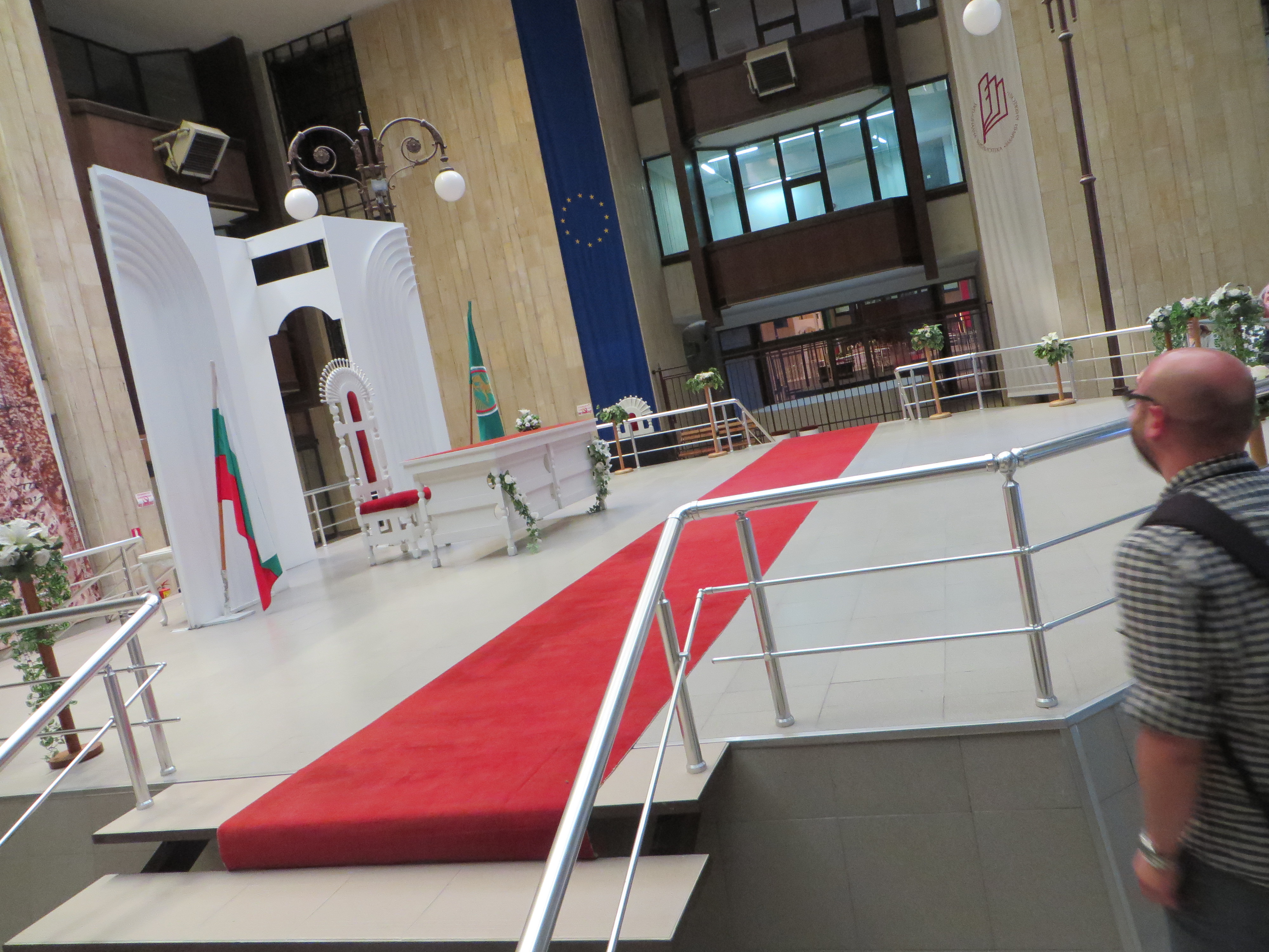 Learning: Stara Zagora’s library is one of several cultural centers surrounding a large portion of exposed Roman road lined with shop foundations. The other centers include the Opera. The library shares its spaces with whichever group or cultural institution that can use them. We saw at least three exhibits: a Sofia Comic Expo, a Bulgarian 100 years of filmmaking, and a youth art show using a technique similar to stained glass design. On an upper floor of the building is a stage used for all wedding ceremonies, unless the bride and groom pay for officials to come to another place. Church weddings follow the civil ceremony. The building had been designed for Party headquarters, so the departments of the library were separated, but the spaces were large and had lots of natural light. The children’s section seemed comparable to our own libraries in the U.S. and the various activities in the building seemed like an amplification of what our libraries offer. The special place of Regional libraries as leaders and support for smaller libraries in Bulgaria made this seem normal.