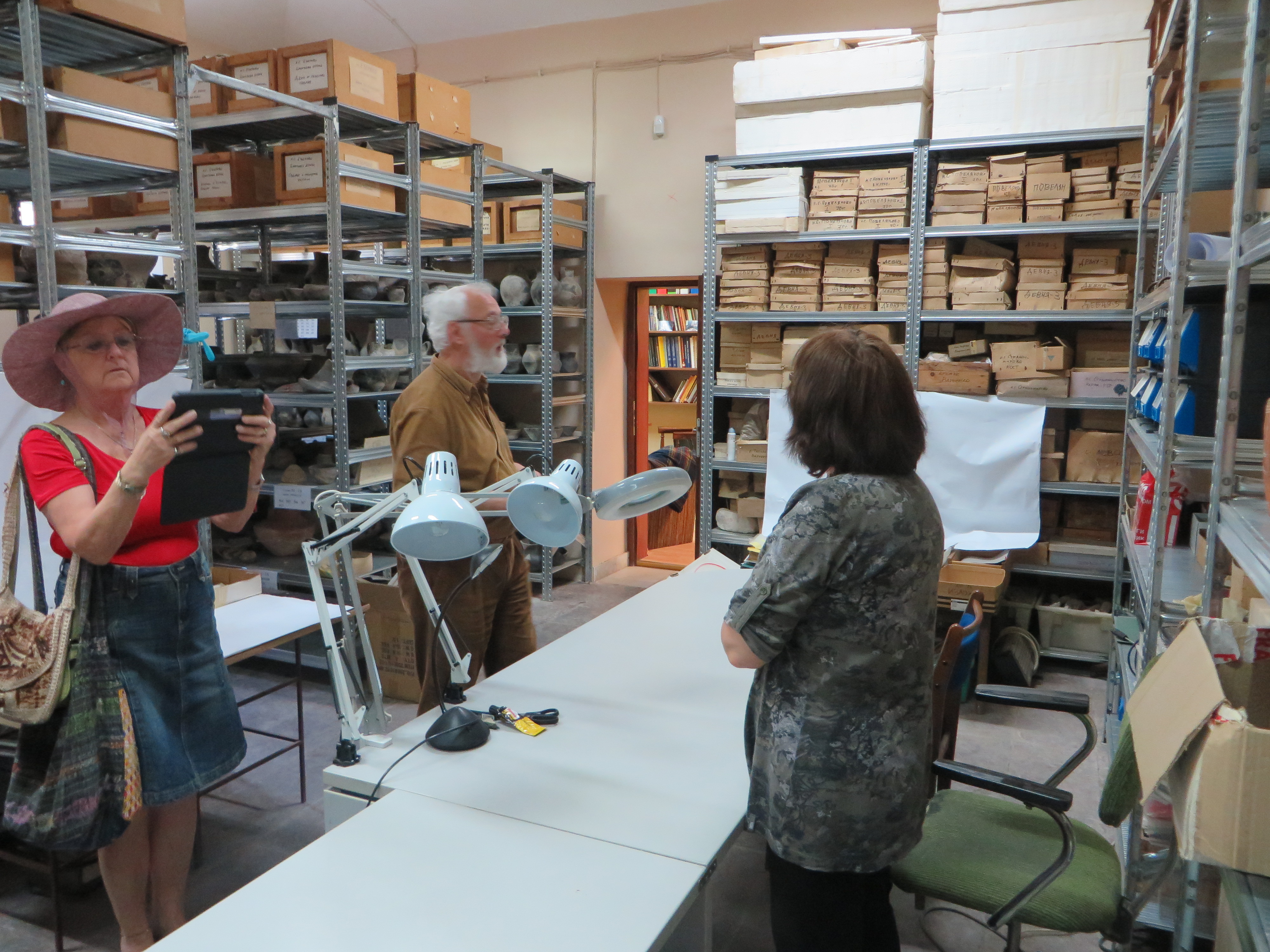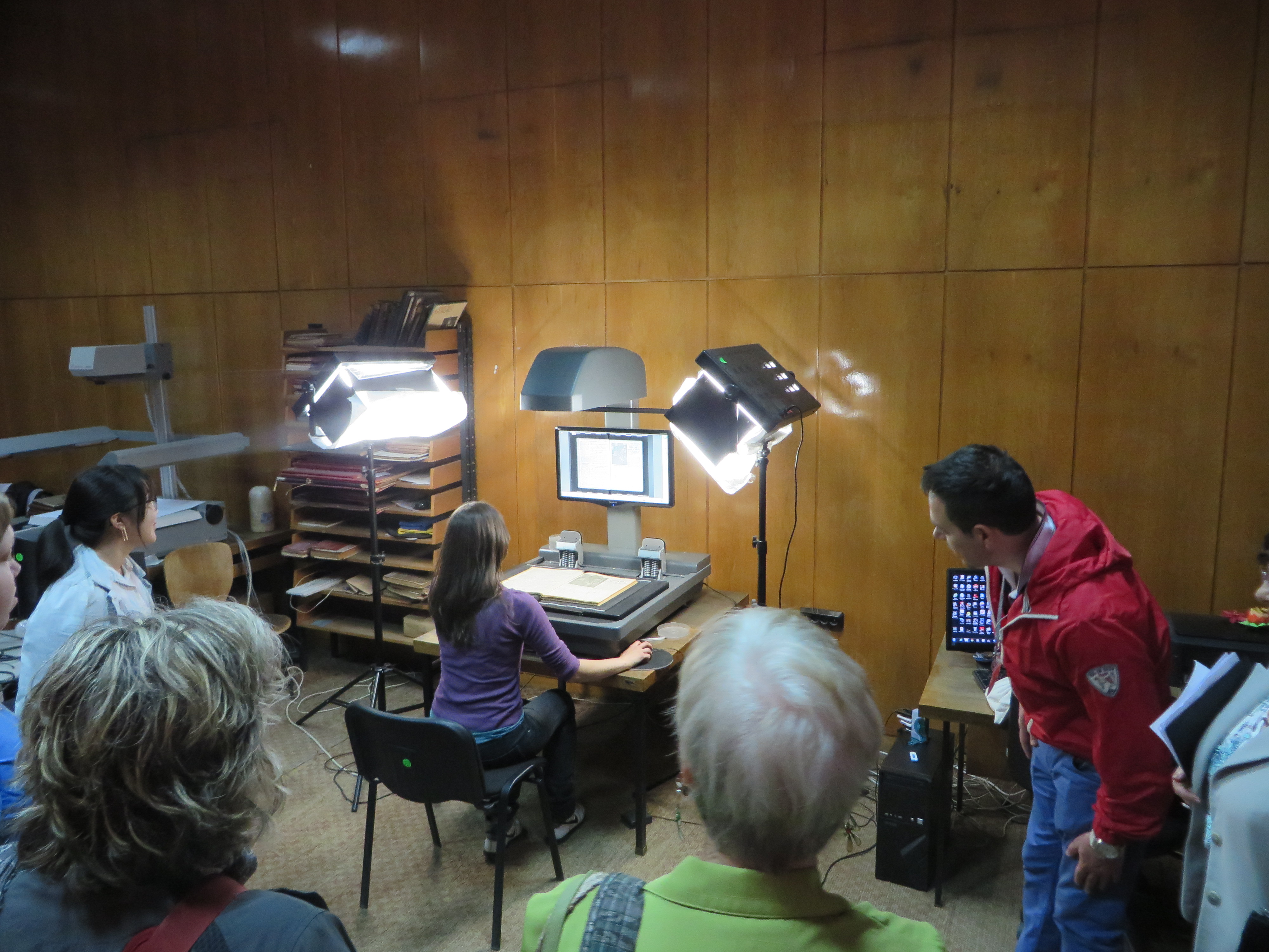 The digitizing workroom is spacious and inviting for attracting students from the nearby university to work part-time to complete the scanning work. The archives reading room and collection development space provides access and processes the digitized archives materials. We saw the oldest photograph known in Bulgaria; and an older man was working with a younger one to combine efforts in identification of materials.