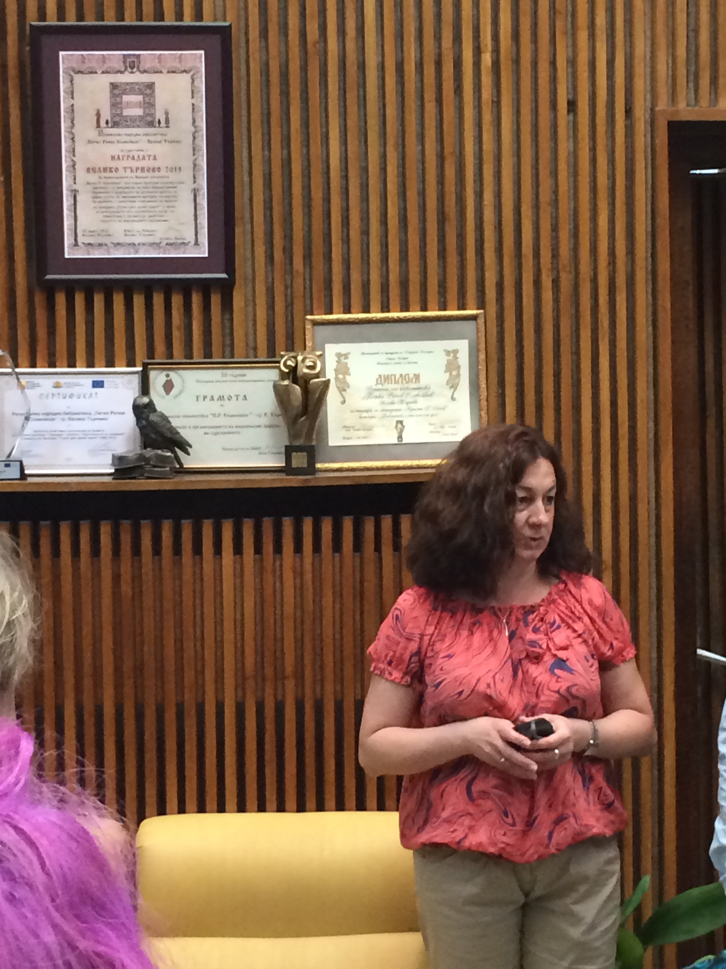 Experience: The Veliko Tarnovo Municipal Library and Branch Library was a tour of personal history led by the director to the branch library where she started her library service. The Municipal Library had the feeling of a promoter of the arts and music. We saw a highly professional illustration exhibit and stained glass windows representing art and music. A librarian played the piano for us as we gathered in a great room to exchange gifts. I gathered that although the municipal library rooms themselves were not presented, they were functional and well used.