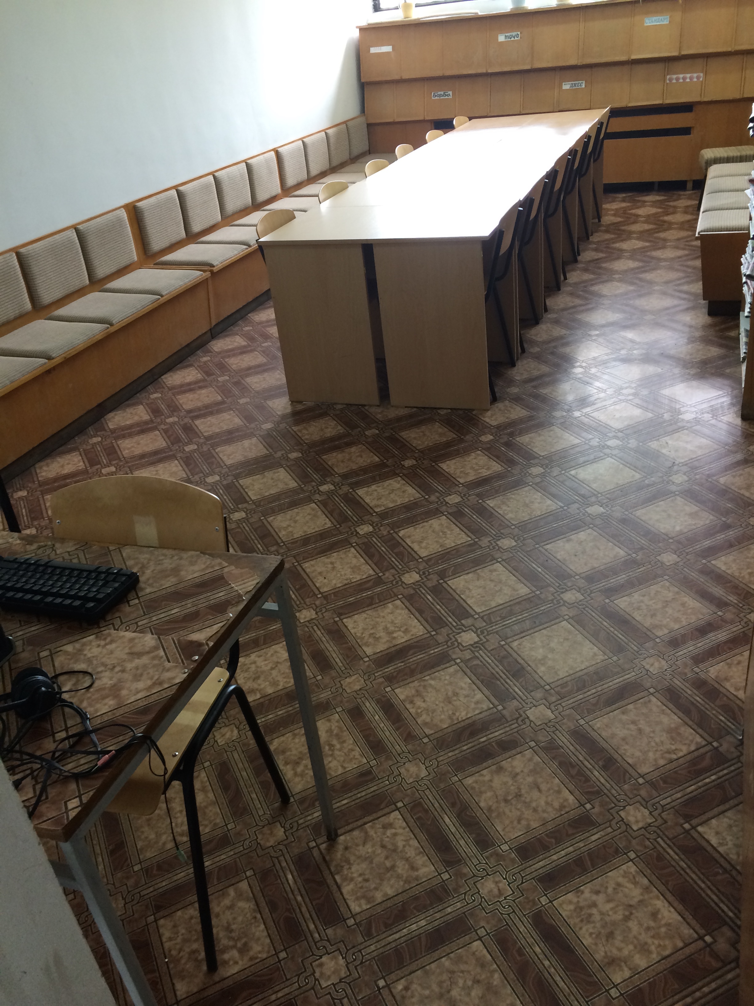 Website: It is possible to Google the Sofia University homepage, find the Education tab, and then the University Library listed in the Quick Links on the right. It may help to know that the full name of the library is University Library St. Kliment Ohridski. On my home computer, the web site appeared in English. The language switch buttons for the website are Bulgarian and British flags in the top right. I find the site very well organized and clearly presented. The open hours for all the branches are listed. I looked at the website for the Classics branch library; and although it took a little while for the English version to load, I was able to explore text and photographs about the collection and activities of this library at http://kkf.proclassics.org/index-eng.php