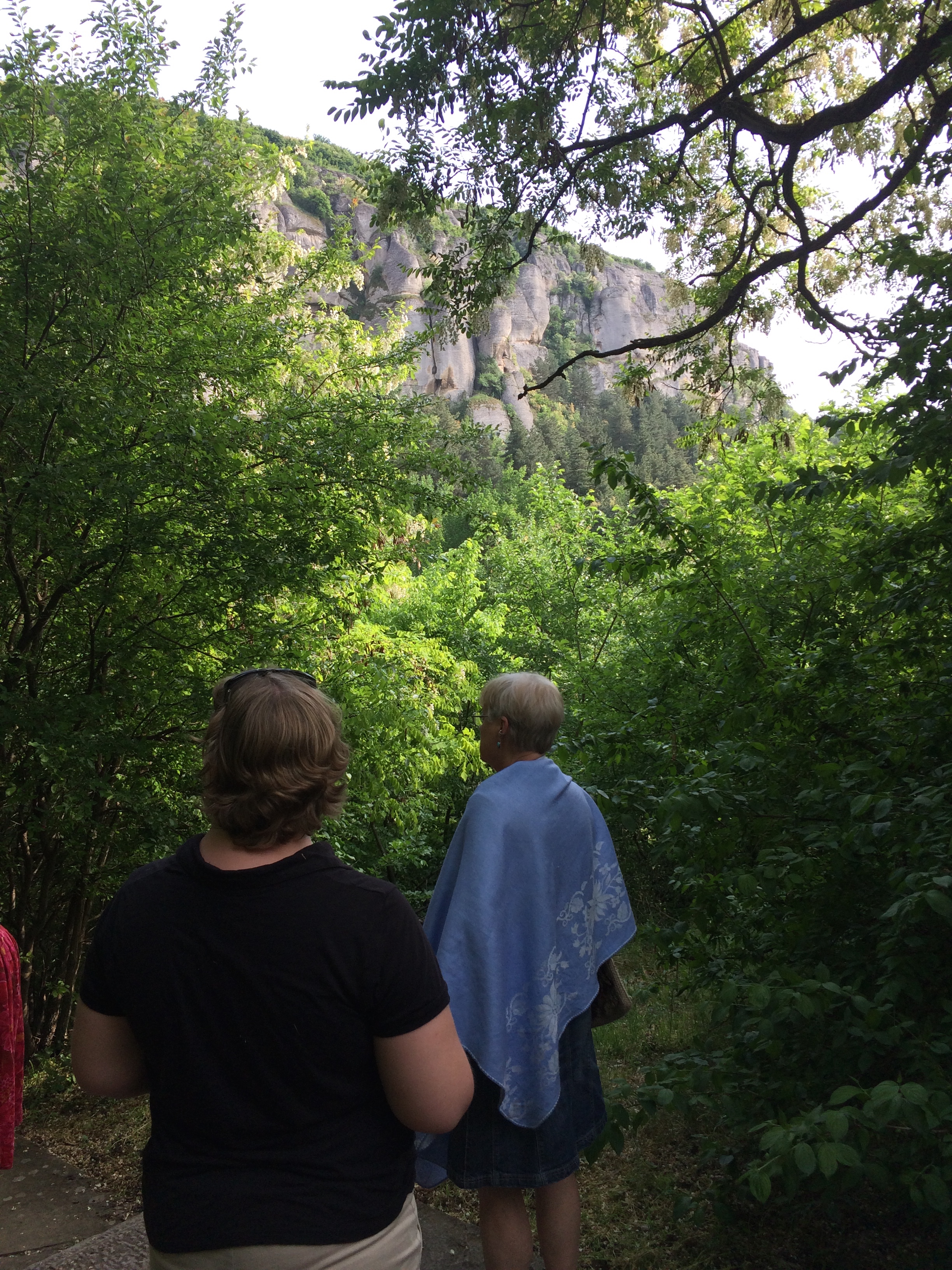 Experience/Learning: The Thracian Horseman on the huge rock face of Madera is deteriorating in the weather, but I got to see a replica that had been made years ago in the Archeology Museum in Sofia. The detail there is quite clearly a horse and rider with a hound and a lion beneath. The birds calls as we walked through the trees were unusual to me. The space under the mass of rock seemed to offer special protection and cool rest while we stopped there. We learned that it had been used over time by different groups of people.