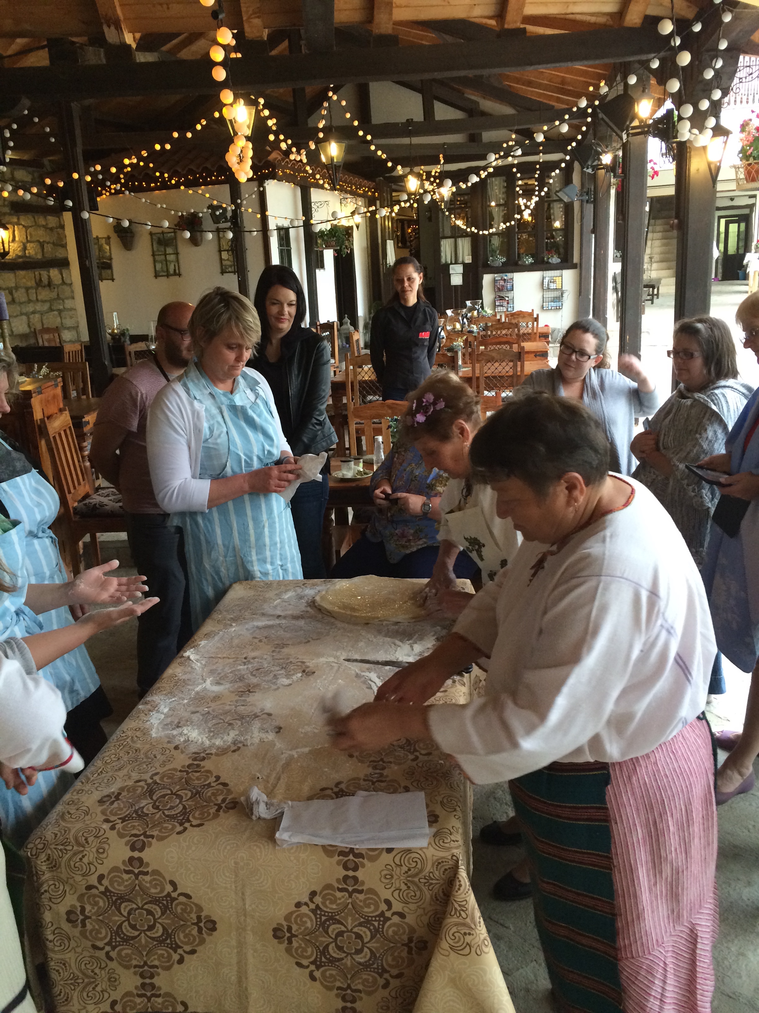Experience/Culture: The Villa Bulgara was a big treat in offering the warm experience of local women singing traditional songs, teaching our group to dance as they sang, and showing us their bread making and including three women from our group in the process. The dinner there was a slow food experience in that everything we ate was from the local area. The rooms were charming and new. On a walk in the morning, I heard cuckoos calling from trees in a nearby valley. On the other side of the valley, I saw two hotel buildings in progress. I imagined the cooperation with the Villa Bulgara as a special occasion dinner setting; but mostly the couple running the place and cooking our meal reminded me of my neighbors who ran a bed and breakfast together. And through this couple’s efforts, we are able to appreciate local Bulgarian culture that is held over time through individual people, these women who sang for us.