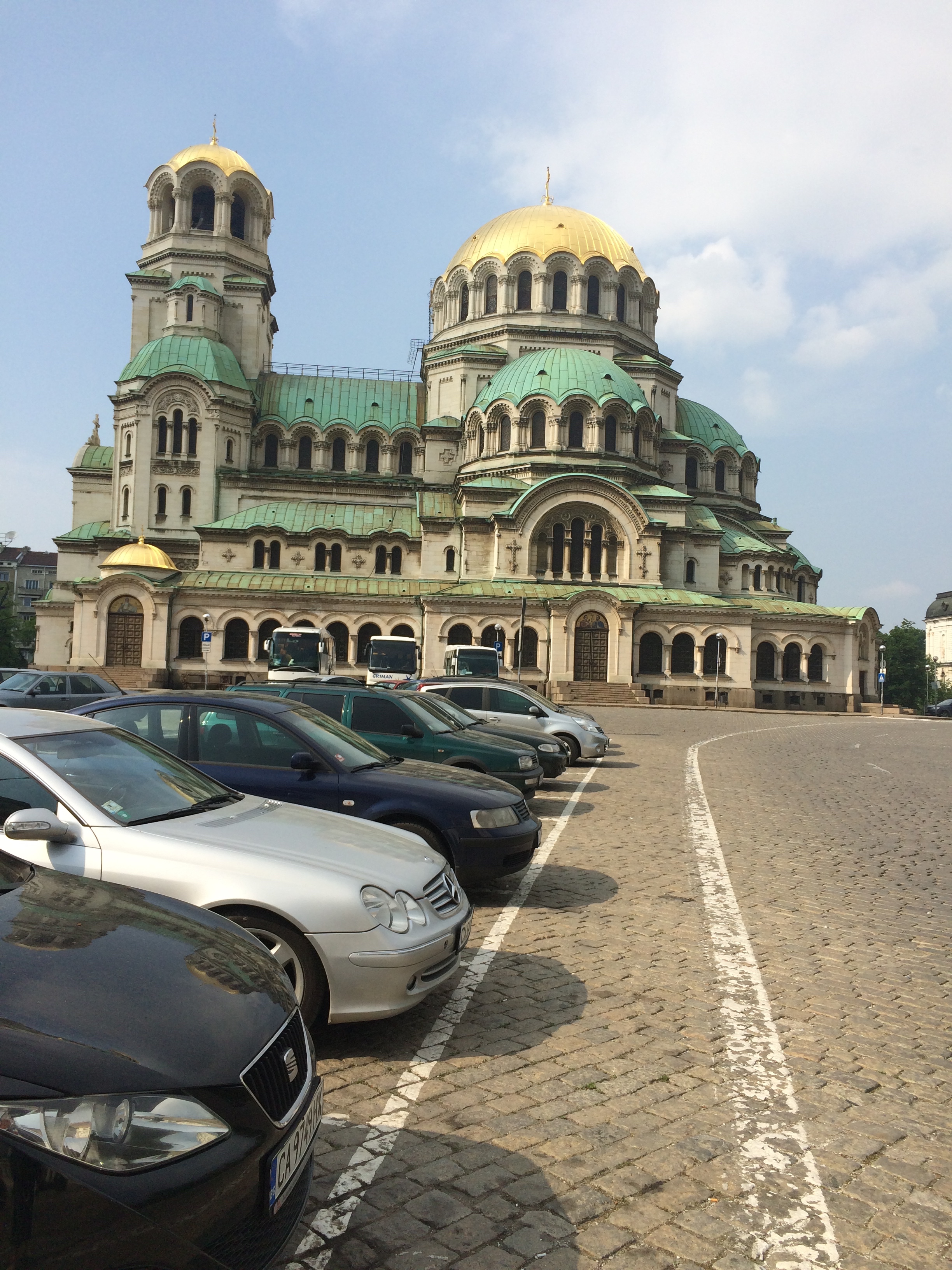 Experience/Culture: The city of Sofia is home to the world’s religions: we took photos of a Jewish temple, a Muslim mosque, and Orthodox Christian churches. One of our group went to a Mormon meeting: she found the meeting place online. The timing of our trip worked out for joining in A Night at the Museums which masses of people turned out for. We found the Natural History museum too packed for comfort, but explored a city gallery, the spectacular fountain in front of the President’s building, and did a lot of people watching. Our lunch on Sunday allowed for photos from floor to ceiling windows on the third floor of a building with views of the yellow brick road and the church of St. Nicholas.