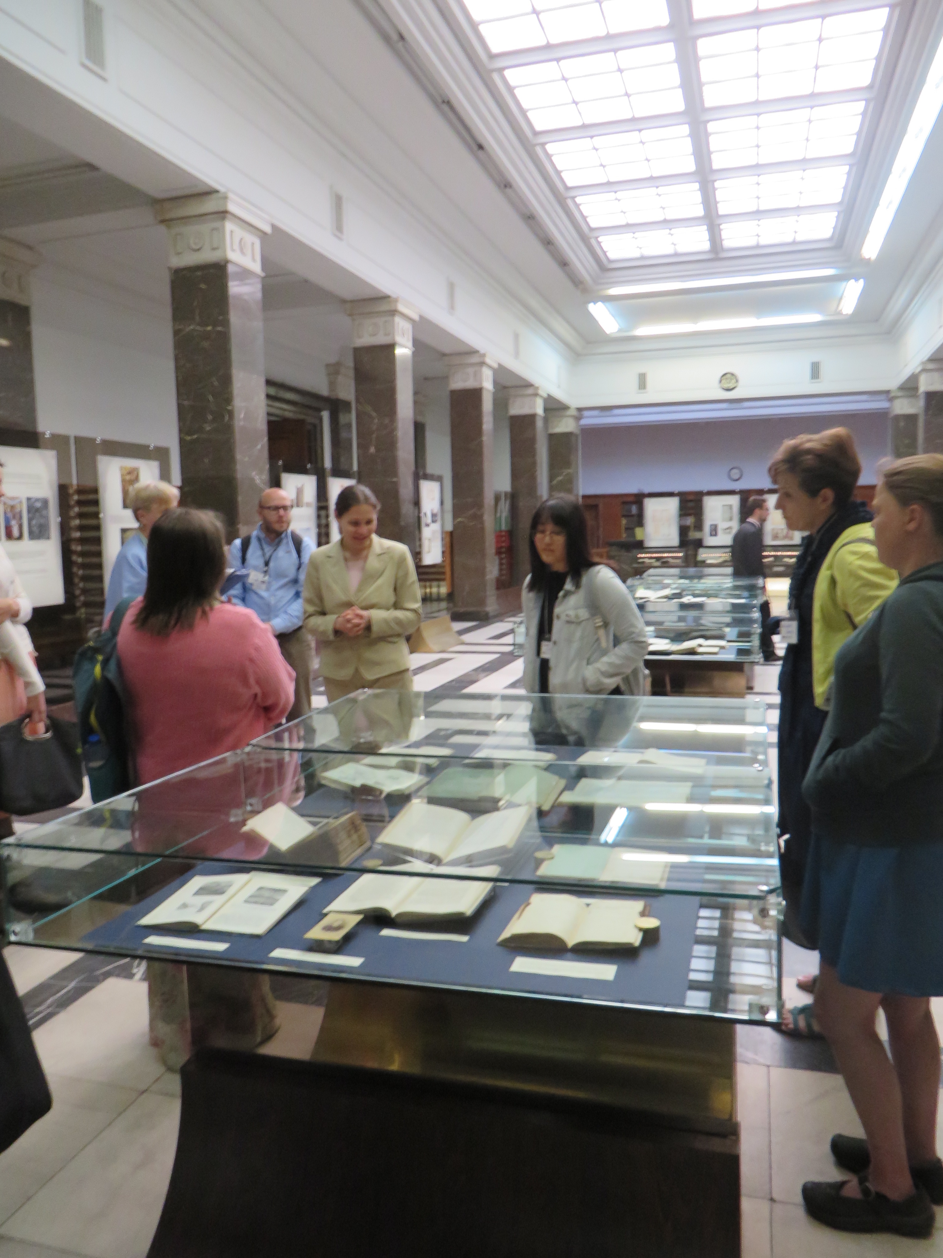 Experience: tour of central library services and holdings; presentation of services by Bilyana, Deputy Director; presentation of archive treasures (16th-19th centuries) by Dr. Anna Angelova, Director, in Reading Room “Studii”; and tour of Philological Library under dome, including view of digitized document. Cataloging system designed by director of 36 years, based on Belgian and Prussian systems.