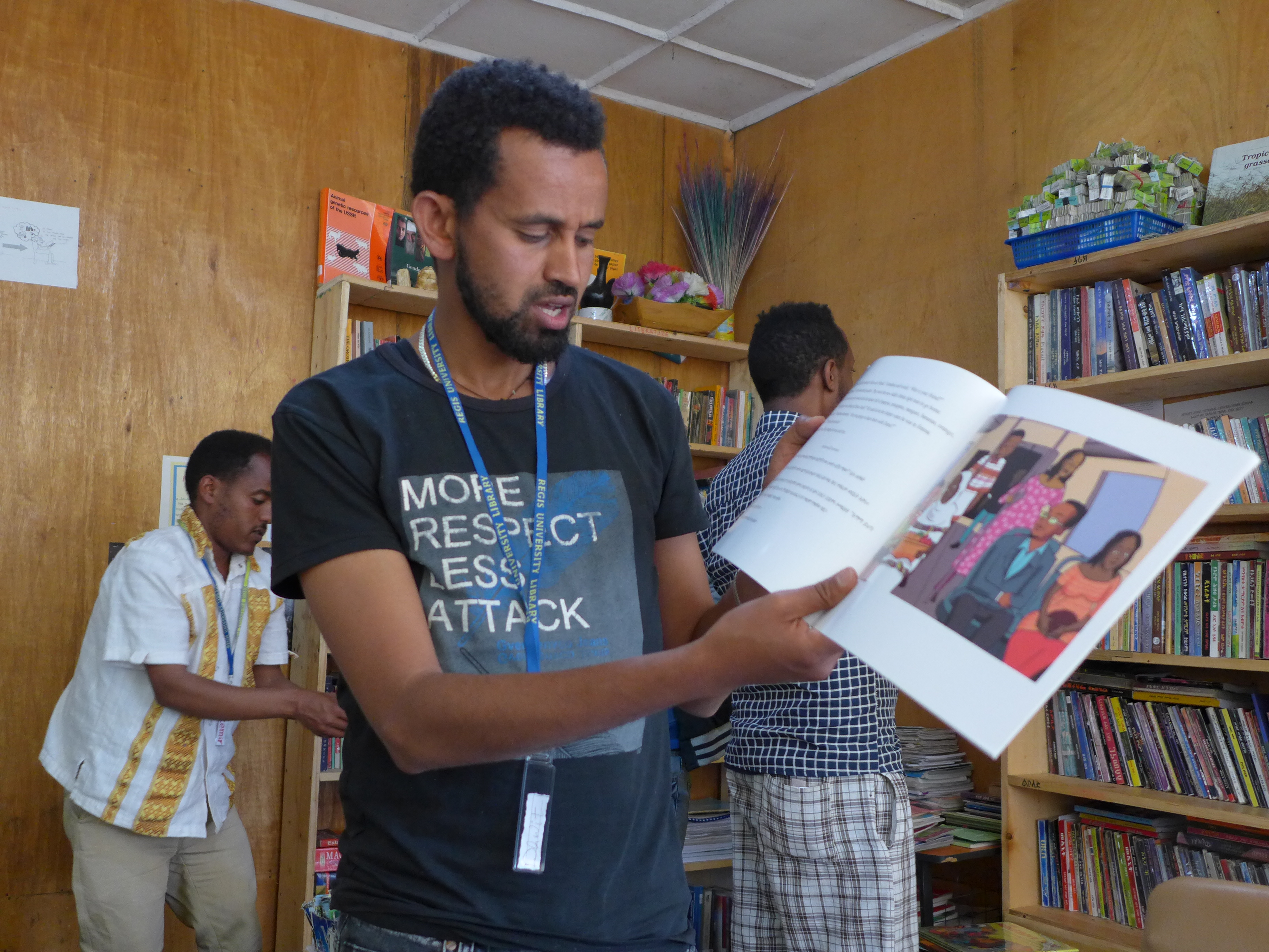 Ever interested in children’s book publishing in local languages, she became acquainted with African Storybook (ASb) through a Facebook contact/Peace Corps Volunteer, Ethiopia, where she had served in the 1970s. Upon her arrival in Ethiopia she contacted Mezemir Girma, the Ethiopian expert in Debre Birhan, Ethiopia, and they made plans to conduct the first of three workshops on children’s book publishing with African Storybook, funded in large part by the ILCE-IG grant.