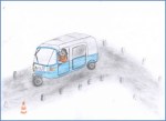 During the brainstorming session, the group focused on a topic suggested by Janet, the story of a female bajaj driver, having seen one in the town of Debre Birhan. A bajaj is the primary mode of transportation in the smaller towns outside of the capital of Addis Ababa. It is an enclosed, three-wheel vehicle that holds a driver and up to three passengers, is inexpensive, very mobile and can navigate paved, cobblestone, or dirt roads. Nearly all drivers are male, and the female seen on the roads in Debre Birhan was definitely an exception. Several stories were drafted and a vote was taken on which story to publish: Abebech, the Female Bajaj Driver by Dawit Girma. Mezemir and Janet then worked on finding an illustrator for the story and after a few months enlisted the support of Yirgalem Berhanu.